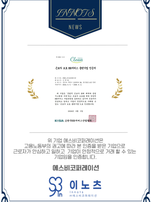 에스비코퍼레이션 근로자 보호 HR서비스 클린기업 인증