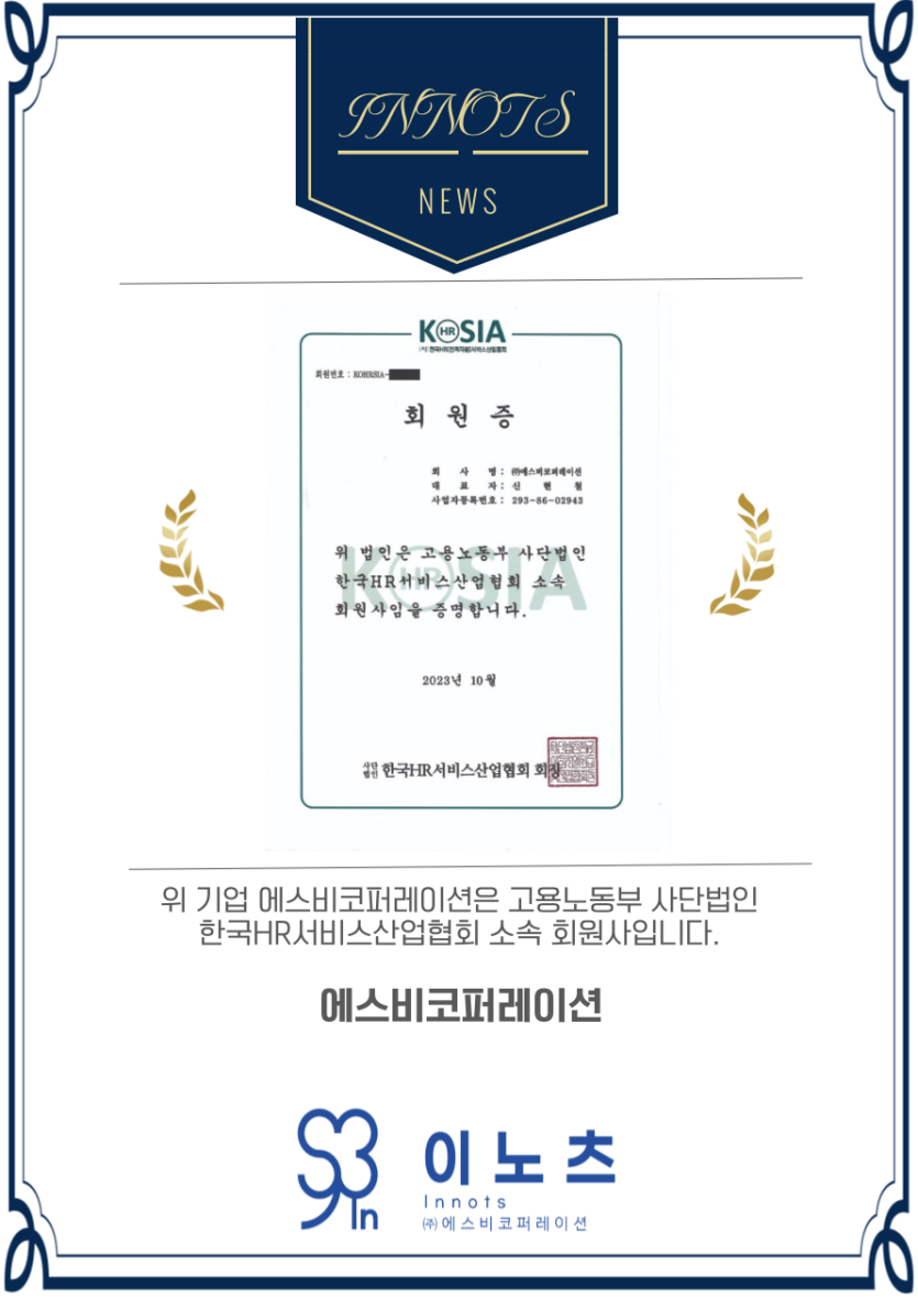 한국 HR서비스협회 추천정회원사 선정